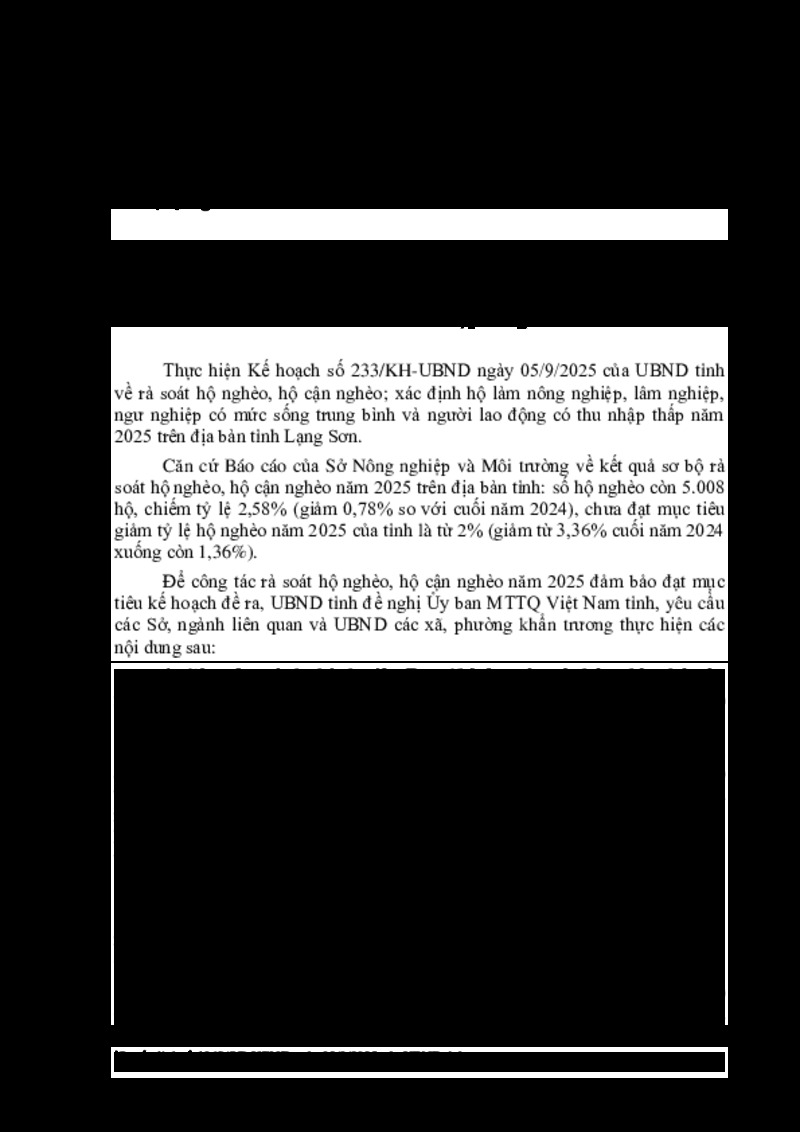 | Tiêu đề văn bản | V/v tăng cường kiểm tra, phúc tra, giám sát rà soát hộ nghèo, hộ cận nghèo năm 2025 | ||