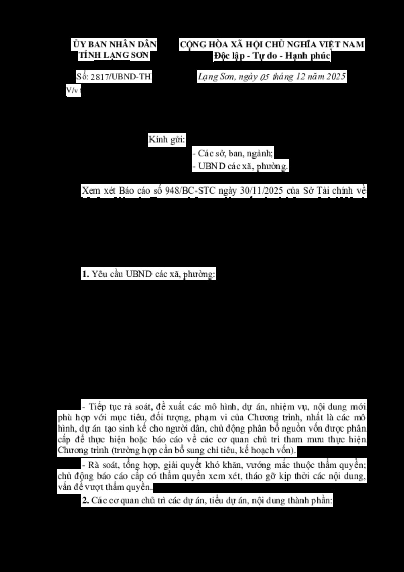 | Tiêu đề văn bản | V/v tăng cường thực hiện các Chương trình MTQG trong tháng 12/2025 và chuẩn bị giai đoạn 2026-2030 | ||