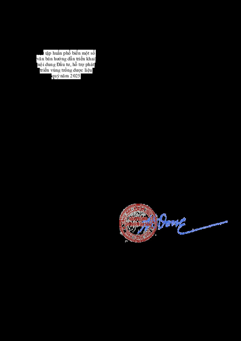 | Tiêu đề văn bản | V/v tập huấn phổ biến một số văn bản hướng dẫn triển khai nội dung Đầu tư, hỗ trợ phát triển vùng trồng dược liệu quý năm 2025 | ||