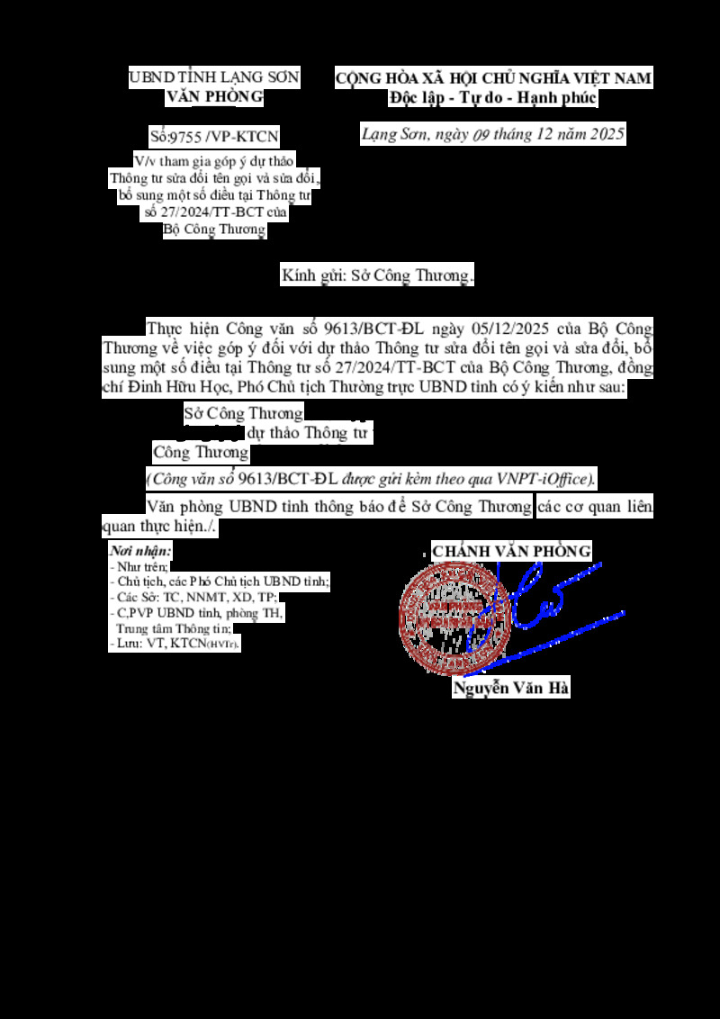 | Số hiệu | 9755/VP-KTCN | Cơ quan ban hành | --- |