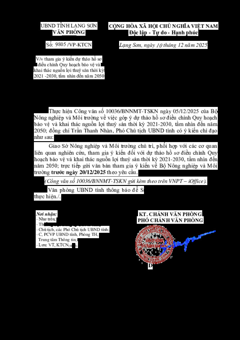 | Tiêu đề văn bản | V/v tham gia ý kiến dự thảo hồ sơ điều chỉnh Quy hoạch bảo vệ và khai thác nguồn lợi thuỷ sản thời kỳ 2021 -2030, tầm nhìn đến năm 2050 | ||