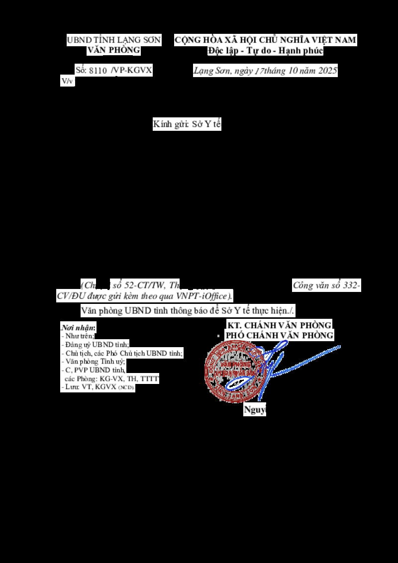 Tiêu đề văn bản | V/v tham mưu triển khai thực hiện Chỉ thị số 52-CT/TW ngày 03/10/2025 của Ban Bí thư | ||