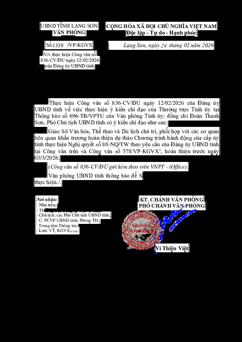 | Tiêu đề văn bản | V/v thực hiện Công văn số 836-CV/ĐU ngày 12/02/2026 của Đảng ủy UBND tỉnh | ||
