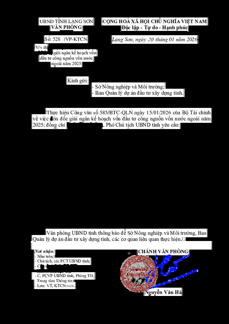 | Tiêu đề văn bản | V/v thực hiện yêu cầu của Bộ Tài chính về giải ngân kế hoạch vốn đầu tư công nguồn vốn nước ngoài năm 2025 | ||