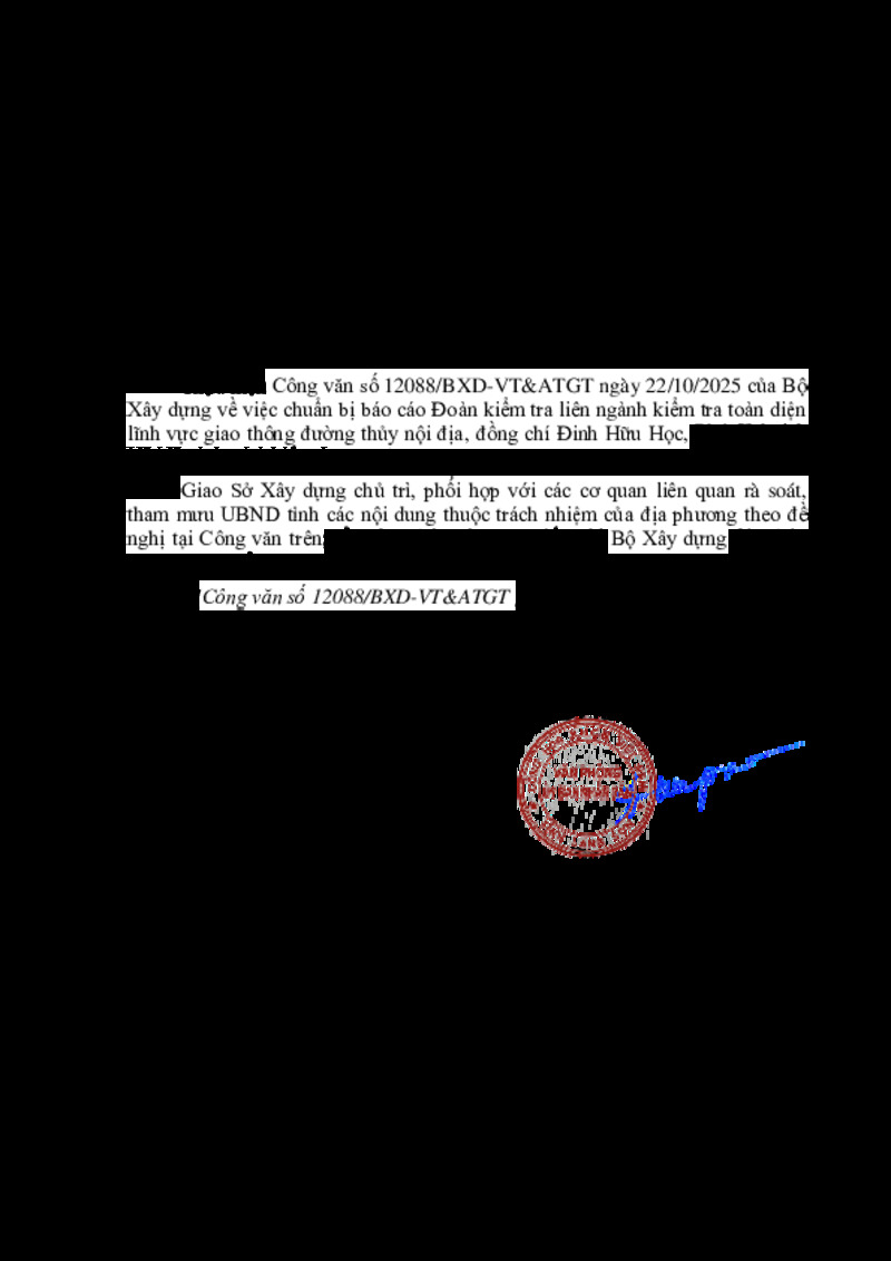 | Tiêu đề văn bản | V/v tổng hợp, báo cáo Đoàn kiểm tra liên ngành kiểm tra toàn diện lĩnh vực giao thông đường thủy nội địa | ||