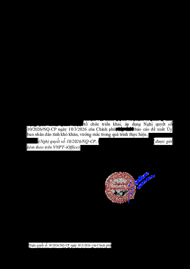 | Tiêu đề văn bản | V/v triển khai thực hiện Nghị quyết số 10/2026/NQ-CP | ||