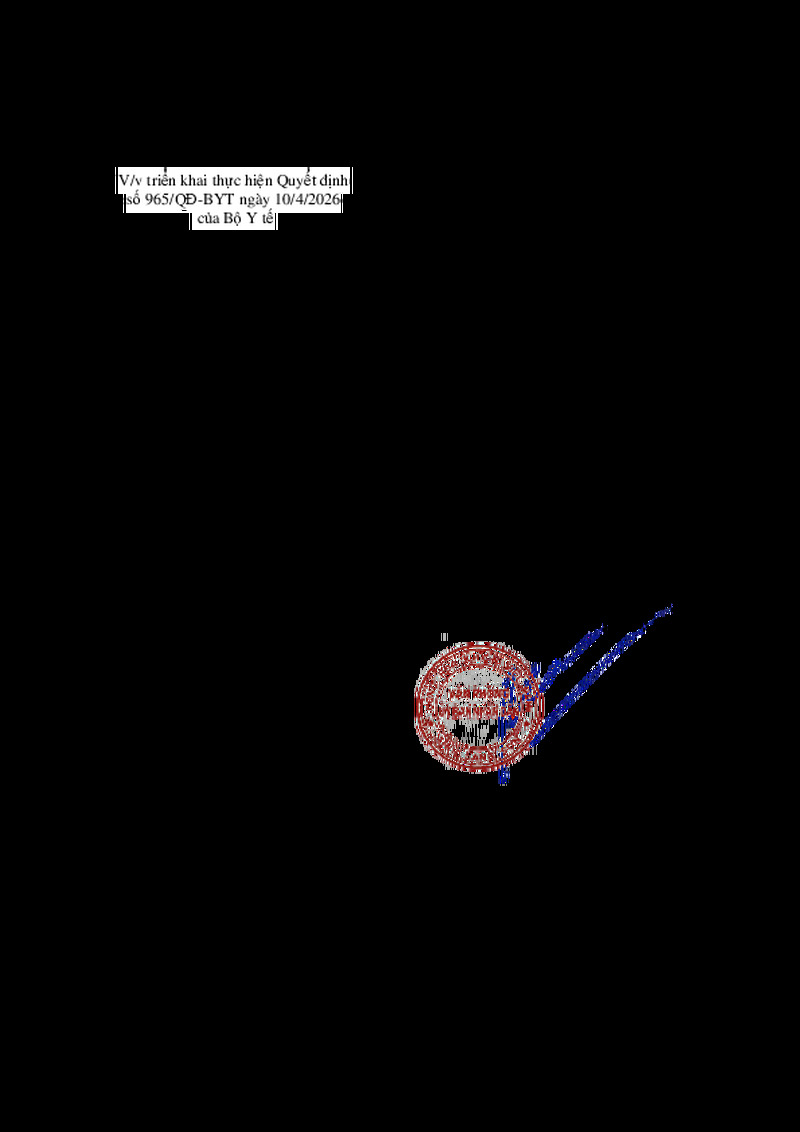 | Tiêu đề văn bản | V/v triển khai thực hiện Quyết định số 965/QĐ-BYT ngày 10/4/2026 của Bộ Y tế | ||