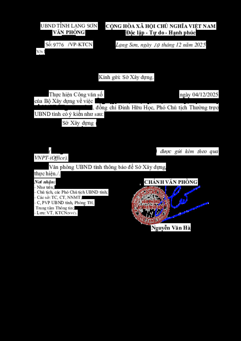 | Số hiệu | 9776/VP-KTCN | Cơ quan ban hành | --- |