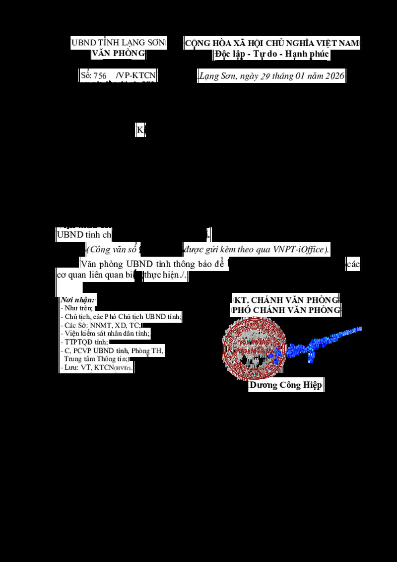 | Số hiệu | 756/VP-KTCN | Cơ quan ban hành | --- |
