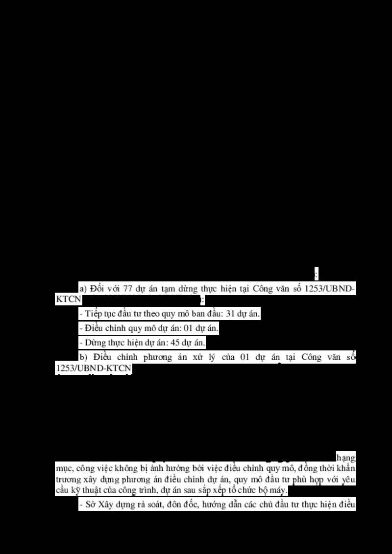 Tiêu đề văn bản | V/v xử lý các dự án, công trình, trụ sở đang triển khai xây dựng hoặc đã phê duyệt chủ trương đầu tư xây dựng chịu tác động bởi việc sắp xếp, tinh gọn bộ máy (lần 2) | ||