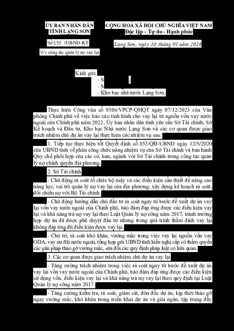 | Tiêu đề văn bản | Về việc công tác quản lý nợ vay lại | ||