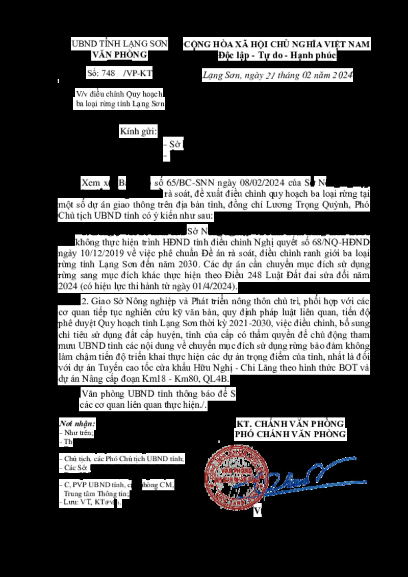| Tiêu đề văn bản | Về việc điều chỉnh Quy hoạch ba loại rừng tỉnh Lạng Sơn | ||