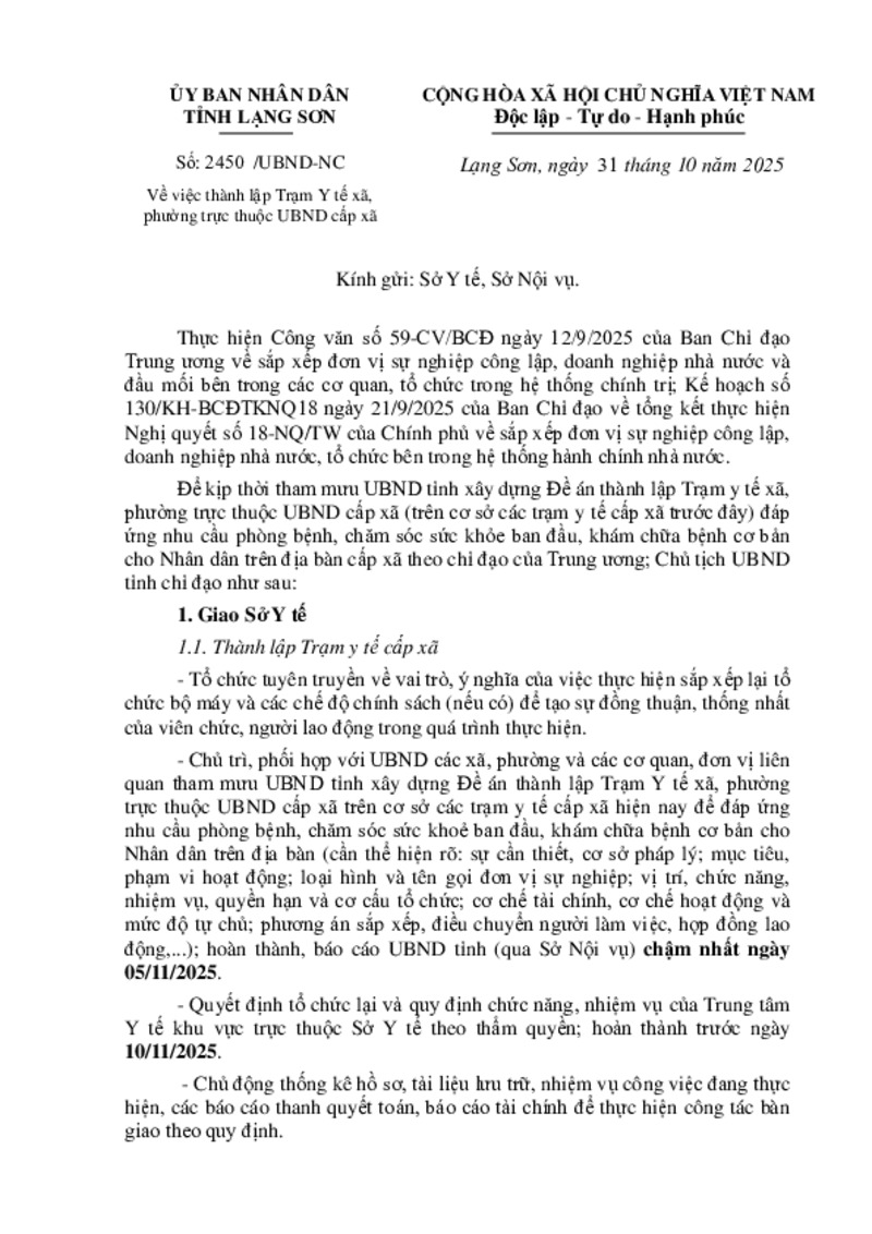 | Tiêu đề văn bản | Về việc thành lập Trạm Y tế xã, phường trực thuộc UBND cấp xã | ||